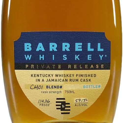 Barrell Whiskey Private Release CH01 Whiskey is a blend of Kentucky whiskeys, with the largest component being an 18-year-old Kentucky whiskey. The juice is then finished in a Jamaican rum cask for some extra oomph.