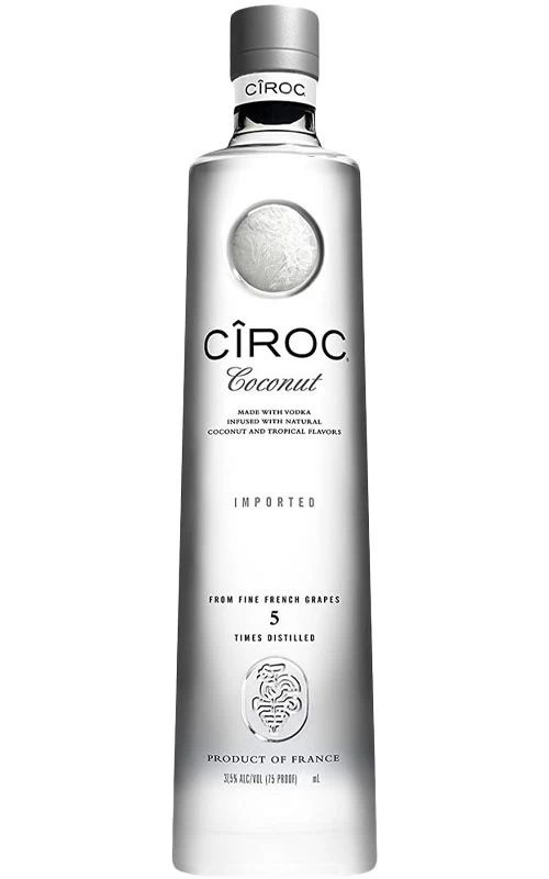 CÎROC Coconut is one of the labels first flavor-infused vodkas. Gluten free and quintuple distilled five times, the spirit is infused with coconut and tropical fruit flavors, yielding a luscious, smooth taste.