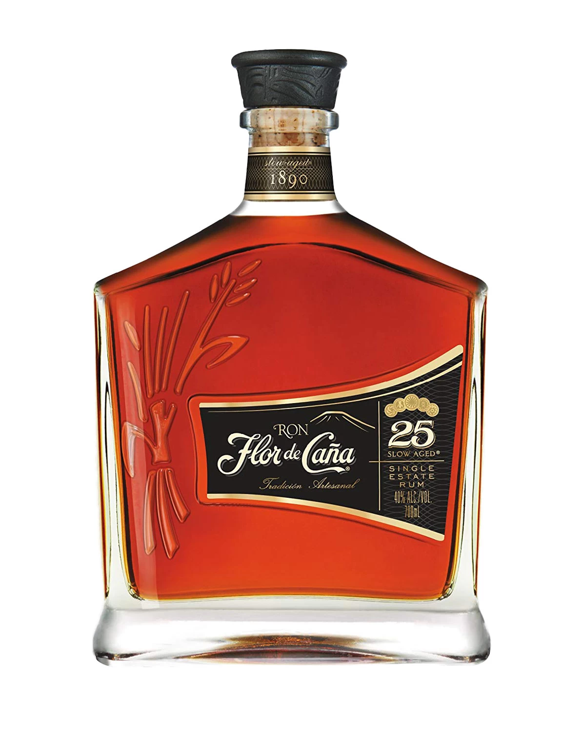 The crown jewel of the Flor de Caña portfolio. A 25-year old, ultra-premium rum that is full-bodied with a dark amber color. It has an exquisite aroma with notes of vanilla, wood and dark cocoa. Flavor of fruity notes of almond and nuts, with a full and long finish that lingers in the palate. Best enjoyed neat or on the rocks, Flor de Caña 25 Year is sugar-free, gluten-free, KOSHER, and fair trade.