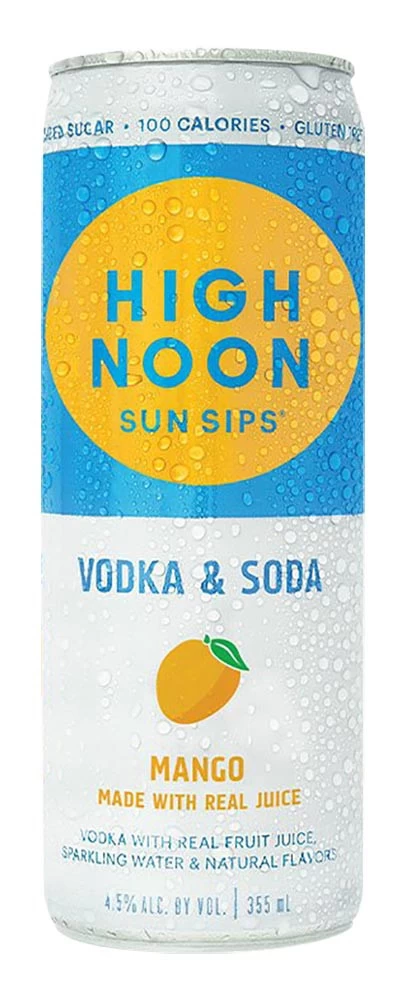 Made with real vodka, fruit juice, sparkling water, and natural flavors, High Noon Mango Hard Seltzer contains no added sugar, delivering a premium tasting experience. With only 100 calories and gluten-free, this bright and refreshing cocktail tastes like a walk on a beach on a hot summer day. Enjoy chilled or poured over ice.