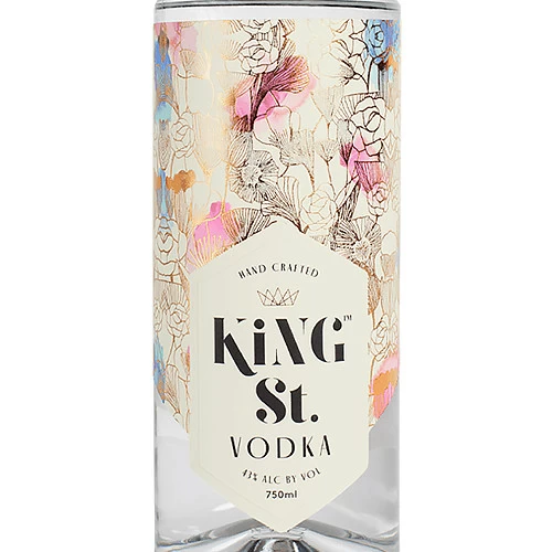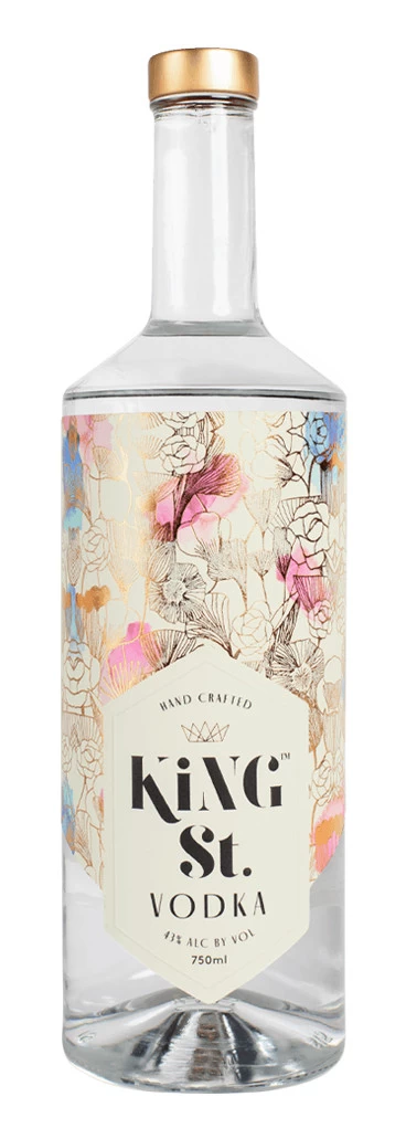 King St. Vodka is produced under the watchful eye of Master Distiller, Ian Cutler. A proprietary process using GMO-free corn and alkaline water yields a gluten free, ultra-premium spirit with a hint of sweet vanilla flavor. Distilled seven times and then filtered, King St. is made from the best ingredients to deliver a clean, smooth taste with each sip. Launched November 2019, King Street Vodka makes the perfect martini as well as the ideal foundation for your favorite vodka cocktail. Bottled at 43% ABV.