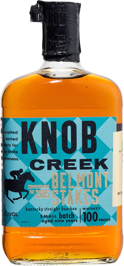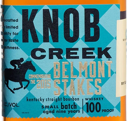 Knob Creek 2015 Belmont Stakes Kentucky Straight Bourbon has a noticeably dark color, with an aroma of oak, caramel, cherries and sour peach candy. The palate is filled with notes of fresh toast, maple syrup and beer nuts, and leads to a long, smooth finish with just a bit of a bite.