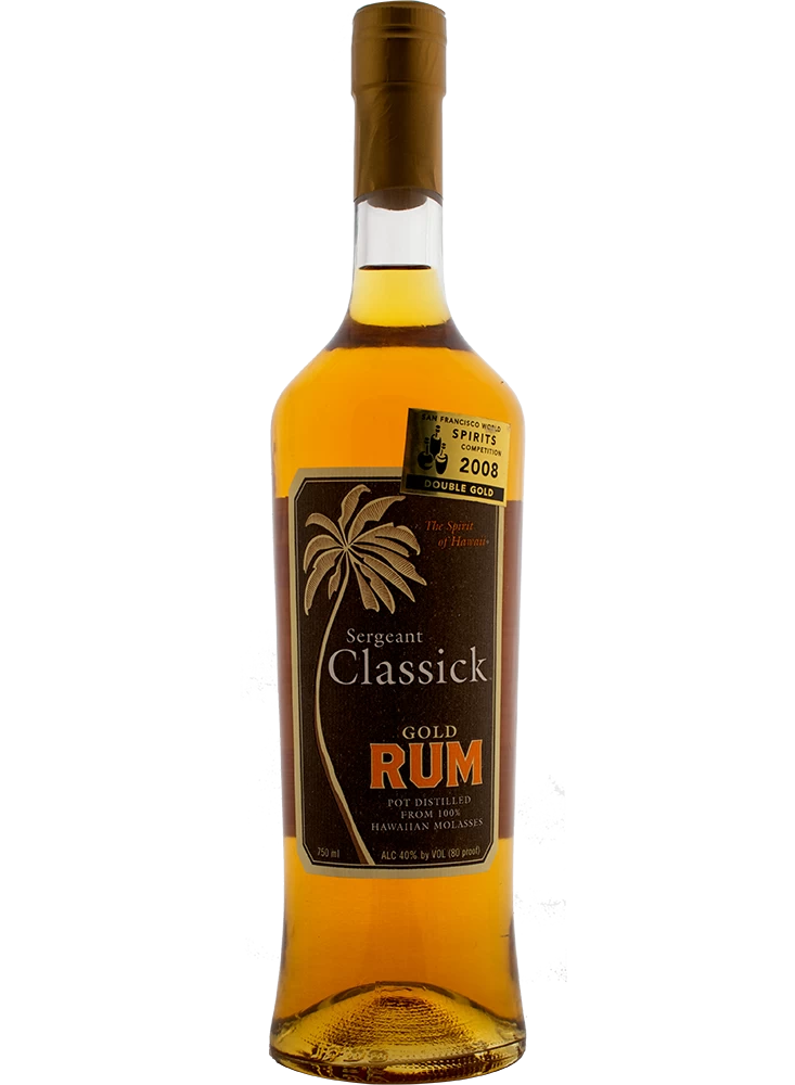 The unique exposure to oak chips gives the rum tones of soft oak, honey and peaches. The initially sweet and sour aroma opens to a more floral scent and earned Sergeant Classick Gold Hawaiian Rum the Double Gold Medal at the 2008 San Francisco World Spirits Competition.