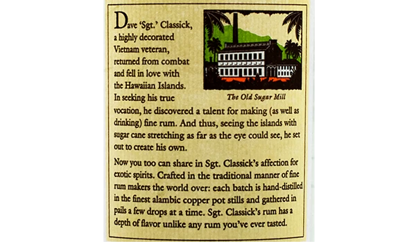 About Sergeant Classick Gold Hawaiian Rum