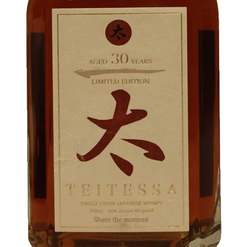 Teitessa 30 Year Old is a limited-edition Japanese single grain whisky. The oldest of the Teitessa offerings, it was matured in a combination of 3 different barrels: Spanish oak, American white oak, and Rothan oak. The 80-proof spirit is mellow and refreshing with deep tannin and woody notes as well as a pleasant sweetness.